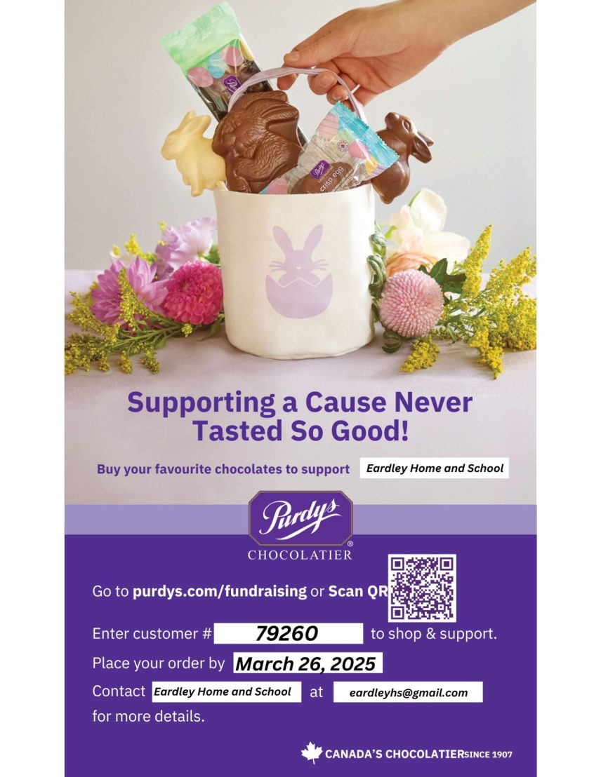 Purdy Chocolate order deadline is March 26 at 5:00pm.
