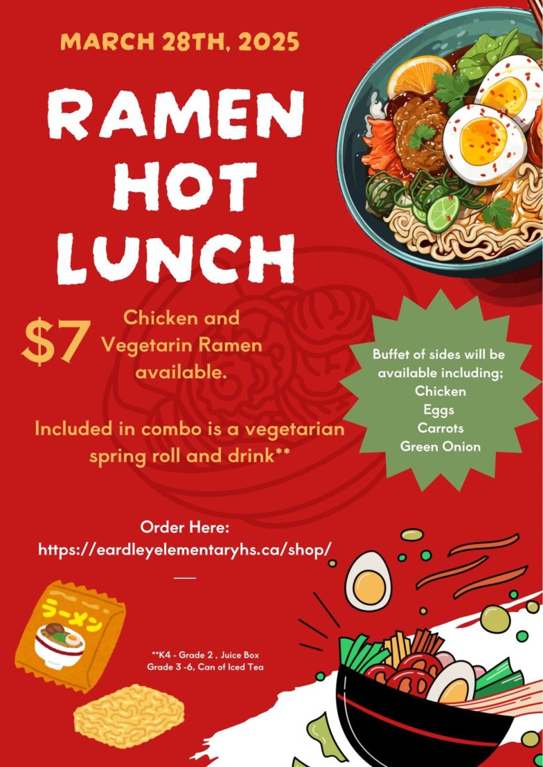Ramen Hot Lunch will take place March 28. Please see the attached flyer for order information.